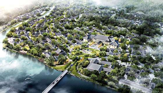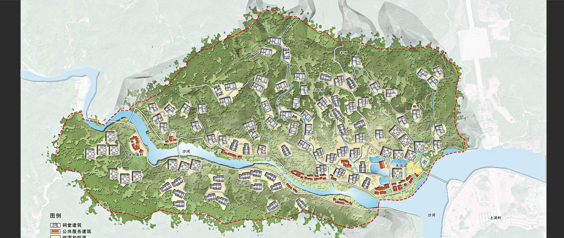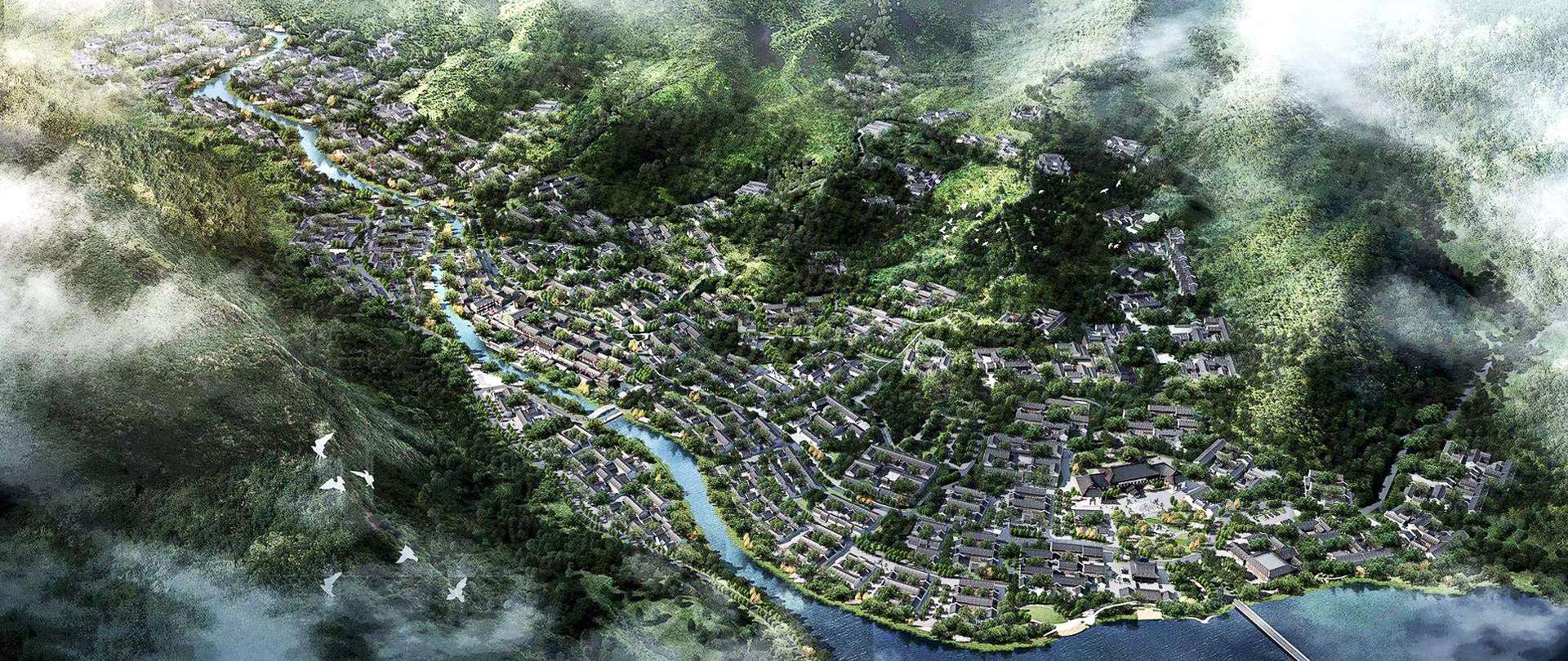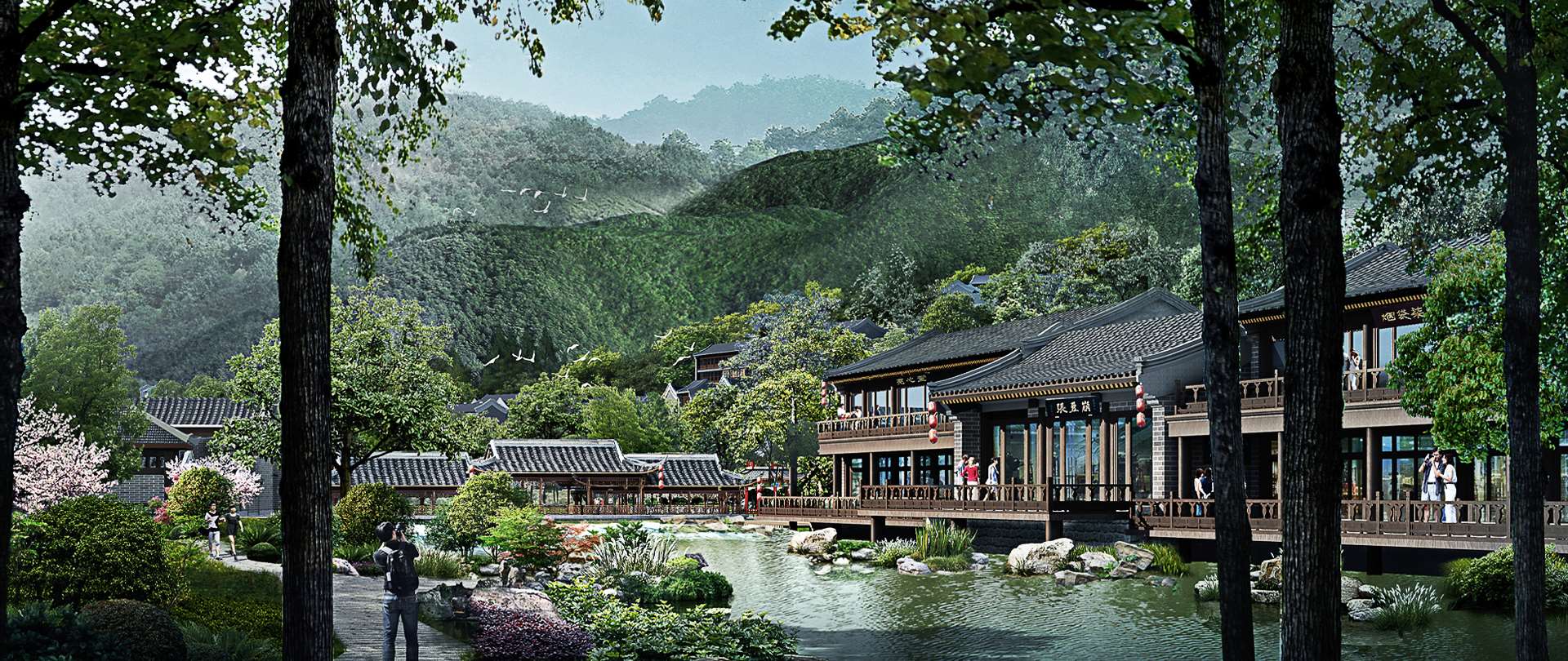 中华百家姓文化园区位于河南鲁山县城西伏牛山东麓,邻近尧山国家级风景名胜区。项目规划以中原百家姓文化、温泉资源为双核心,在空间布局上以沙河为景观轴线,沿水布置上古姓氏宗祠,文化上体现华夏姓氏同出一脉,溯源识古。沿河布置的上古姓氏宗祠沿谷地道路向南北延伸。设计以一百种姓氏文化为基础,打造一百家姓氏宗祠及民宿,并配套中国姓氏博物馆、滨水传统商业街、接待中心、停车场等配套设施。建筑呈大分散、小聚集的组团式布局。建筑形式融合中国主要姓氏聚居地传统民居元素,结合现代建筑材料和技术。空间上与山地地形紧密契合,文化上照应华夏姓氏、中原百家姓氏源流演化传承关系。